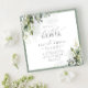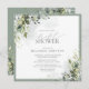 Moderne, elegante viereckige Braudusche mit üppig grauen botanischen Blätter und Eukalyptus, umgeben von hellblauem Eukalyptus-Blau. Personalisieren Sie Ihre Brautparty-Details in weichem Offschwarz, betont mit einer schönen modernen handgeschriebenen Kalligraphie. Auf der Rückseite der Karte befinden sich die botanischen Aquarellbotanikale. Teil einer koordinierten Suite. Die vollständige Sammlung finden Sie hier: https://www.zazzle.com/collections/elegant_eucalyptus_green_botanical_bridal_shower-119330045467288535 Kontakt Designer für weitere Produkte. Copyright Elegant Invites, alle Rechte vorbehalten.