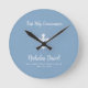Dusty Blue First Communation mit Cross Runde Wanduhr
