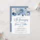 Dusty blauen Blumen 50. Hochzeit Jubiläum Party Einladung mit einem modernen Schriftart.