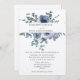 Dusty Blue Floral and Grey Wedding Invitation Einladung