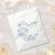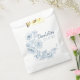 Elegante Duschtüte mit blauen Babyduschen mit Blumenbildern im Chinoiserie-Stil und einem personalisierten Namen und Datum. Ideal für Süßigkeiten, Kekse oder kleine Dankesgeschenke. Koordiniert wunderschön mit der kompletten Dusty Blue Baby Shower Kollektion.