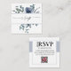 Dusty Blue Floral & Black QR Code RSVP Card Begleitkarte