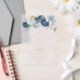 Fügen Sie einfach Ihre Hochzeitsdetails zu dieser niedlichen, eleganten Blumenvorlage hinzu, indem Sie auf den Button "Personalisieren" klicken. Mit modernen blauen und blauen Blumen, grünem Blattwerk und beliebter Typografie. Ändern Sie den Hintergrund dieser Aufforderung, indem Sie auf den Button "Anpassen" klicken.