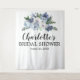 Ein großer staubblauer Blumenstrauß schafft eine hübsche Kulisse für Ihre Brautparty-Fotografien. Es stehen drei Textzeilen zur Verfügung, die Sie personalisieren können.