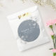 Elegante Hochzeitsgeschenktasche mit einem romantisch staubblauen Dankesaufkleber mit weißer Blumenstrauß, perfekt zum Ausfüllen mit Leckereien oder Geschenken für die Gäste an Ihrem Empfang. Personalisieren Sie mit Namen und Datum für eine charmante endgültige Touch.
