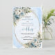 Set the tone for an unforgettable celebration with this elegant watercolor wedding invitation, beautifully designed with dusty blue florals, soft white peonies, and delicate eucalyptus