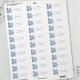 Eine einfache, staubblaue Blume Rücksendeadresse wird mit unserer Dusty Blue Floral Wedding Kollektion koordiniert (siehe Link direkt unter Hauptbild).