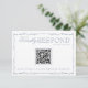 A classy and elegant calligraphy dusty blue and white retro old money wedding qr code rsvp card. That has a vintage and modern white background with blue script and hand written whimsical stylish wording and hand drawn branches. With customizable QR code on the center. Luxurious and chic with classic handwritten lettering. It is all editable by clicking on the personalize button.