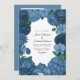 Dusty Blue Floral Photo and QR Code Wedding Einladung