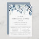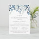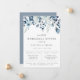 Aquarellfarbene Blumenarrangements in den Tönen von staubigen Blau und Marine, Probe Dinner Einladung. Chic und modernes typografisches Design. Die Rückseite der Karte weist eine solide, staubblaue Farbe auf.