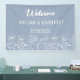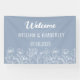 Modernes, elegantes, florales, staubblaues Hochzeitsbanner. Ideal für frische Weds. Man kann es mit Namen und Datum von Braut und Bräutigam personalisieren.