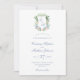 Dusty Blue Floral Wappen auf einer Hochzeit Einladung