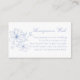 Flitterwochen Wunschkarte Delikates blaues, blühendes Wappen mit mit Monogramm Einschließungskarten. Erleben Sie die Freude an Ihrem nächsten großen Abenteuer mit dieser wunderschön gestalteten Honeymoon Wunschkarte. Diese Karte ist eine perfekte Ergänzung zu Ihrer Hochzeitsvorstellung oder Ihrem Brautparty und ermöglicht es den Lieben, auf sinnvolle Weise zu Ihren Traumfreunden beizutragen. Mit elegantem Layout und warmen Formulierungen ist es ideal für die Platzierung auf einem Flitterwochentisch, in Ihrer Einladungssuite oder neben einem guten Wunsch. Diese Karte fügt eine durchdachte Touch hinzu, die sich nahtlos mit Ihrer Feier verbindet.