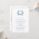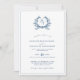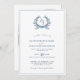 Eine elegante, formelle, klassische botanische Wappen- und Mongramm-Hochzeitseinladung in Azurblau. Auf der Rückseite der Karte befindet sich ein QR-Code für weitere Details auf Ihrer Website.
