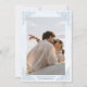 This romantic save the date design features soft dusty blue watercolor florals, delicate blush accents, and elegant vintage scrollwork. The front highlights the couple’s names with a timeless formal layout, while the back includes space for a favorite engagement photo and wedding website details. Its airy blue palette and refined botanical framing make it a beautiful choice for classic, garden, and romantic wedding celebrations. A lovely option for couples creating a coordinated blue wedding stationery suite with a soft and polished look.