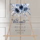 Elegant wedding welcome sign featuring beautiful flowers and modern typography.