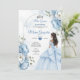 Dusty Blue Floral XV Birthday Invite with Crown Einladung