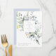 Dieses Design umfasst staubblaue Blumen und eukalyptus-Blätter in Grün.