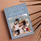 Chic dusty blue Ankündigung Datum freihalten für einen Empfang, um Ihre Hochzeit oder private Hochzeit zu feiern. Die Vorderseite zeigt Ihr Foto und "Save the Date für unser glückliches Ever After Party" in einer Mischung aus schlichter weißer Typografie und einem stilvollen weißen Drehbuch mit Swashes. Fügen Sie unter Ihrem Foto Ihre Namen und das Datum des Empfangs hinzu. Auf der anderen Seite, personalisieren Sie Ihre Hochzeitsankündigung und Save the Date Details und fügen Sie Ihre Namen in einem signaturähnlichen Skript.
