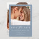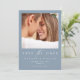 Erleben Sie Ihre Liebe mit diesem Dusty Blue Foto Wedding Save The Date und verbinden Sie elegante Kalligraphie mit einem minimalistischen, modernen Design, das Ihr Lieblingsstift unterstreicht. Diese einfache und dennoch raffinierte Karte eignet sich perfekt für eine inspirierte Hochzeitsankündigung und teilt Ihre besonderen Tagesdetails mühelos mit Freunden und Familie.