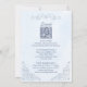 This elegant wedding design features soft dusty blue watercolor flowers, delicate French garden details, and romantic ornamental scrollwork. The layout feels refined and timeless, making it a beautiful choice for classic, formal, and romantic wedding celebrations. Pale blue florals with subtle blush accents create a graceful and airy look that works especially well for spring and summer weddings. The coordinated front and back design also pairs beautifully with wedding website and RSVP QR code details.