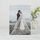 Elegantes Script Foto Overlay mit elegantem Watercolor Dusty Blue Garden Floral Arrangement, Hochzeit Foto Dankeschön Karte. Funktionen, Vorlagentextzeilen für Ihre Namen und personalisierte Nachricht.