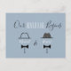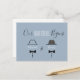 Einfache, minimalistische, moderne, staubige, blaue Homosexuellenhochzeit bewahrt die Datums-Einladung Postcard, mit Vintagen Bogen-Krawatte, die Monogramme zeichne.