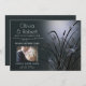 Rustic Nature Foto Verlobung - Ihr Foto mit diesem dunkelblauen, grauen Motiv, ein sanftes Glühen hinter einer hübschen Darstellung von Fesseln und Gräsern mit funkelnd Libellen, die im Glanz glitzern - die Rückseite ist eine koordinierende, leicht anpassbare Vorlage - Original Artwork von WhimsicalArtwork™ für den BarefootBride ™. Das Hotel ist Teil einer kompletten Hochzeitsstudio Suite, sowie Baby Shower, Birthday und Christening Einladungen. Für Fragen oder Hilfe wenden Sie sich bitte an Designer indy.designer@yahoo.com.