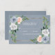 Dusty Blue Gold Blush Peach Wedding RSVP Cards - Design mit einem wasserfarbenen, staubblauen Hintergrund mit einem vergoldeten Rahmen in Eukalyptus und Grün mit floralen Elementen in grau/weiß, staubblau und rot pink/peach. Sehen Sie sich die entsprechende Auflistung auf dieser Seite an, um passende Produkte zu finden.