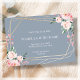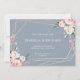 Individuell anpassbare Save the Date Karte in staubblau. Mit hübschen rosafarbenen Blumenstrauß mit goldgeometrischem Rahmen.