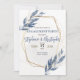 Laden Sie Ihre Freunde und Familie zu Ihrer Verlobungsfeier mit dieser eleganten und dennoch modernen, einfach staubigen Blu- und Goldeinladung ein. Matching-Elemente verfügbar.
