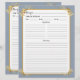 Hier ist die perfekte doppelseitige Rezeptseite, die für die Koordination mit dem passenden Bindemittel entworfen wurde. Das Design, sowohl vorne als auch hinten, besticht durch ein hübsches Imitat aus goldgelbem Blattgold an jeder Ecke auf einem eleganten, staubblauen Hintergrund. Außerdem bietet es Platz für alle Informationen, die Sie für Ihre Rezepte benötigen. Wenn Sie eine Designfrage haben oder dieses Design auf einem anderen Produkt sehen möchten, kontaktieren Sie mich bitte unter jschmidtdesignworks@gmail.com. Design © Judith Schmidt.