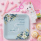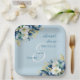 Diese elegante Dusty Blue Gold Glitzer Floral Wedding Papier Platte kann mit Ihren Namen und Hochzeitsdatum personalisiert werden.