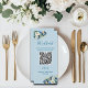 Dusty Blue Gold Glitzer Floral QR Code Bar Menükarte