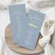 Elegantes, staubblaues Hochzeitsfeierprogramm mit romantischen Goldliedern und modernen Kalligraphie-Schriftart. Dieses vertikale Layout Kontur der Zeremonie Zeitplan und enthält Ihre Namen und Hochzeitstag. Ideal für Frühling, Sommer oder frühe Hochzeiten im Herbst mit Pastellfarben, naturlich inspiriert oder romantischen Themen. Ein schönes Spiel mit der vollen dustigen blauen und goldenen Liebhaber Hochzeitssuite.
