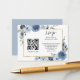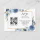 Dusty Blue Gold Pastel Floral QR Code Wedding RSVP Begleitkarte
