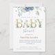 Die Blauen Blautöne-Baby-Dusche Invite ist ein sehr elegantes Design, das große Goldbriefe Sprichwort BABY mit pastellfarbenen, staubblauen Aquarellblumen dekoriert. Der gleiche Stil der Blumenmuster schmückt den oberen und den unteren Bereich der Karte. Der Text auf der Vorderseite ist vollständig einstellbar. Die Rückseite ist eine blaue Aquarellwäsche.