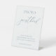Minimalistisches und modernes, staubblaues Foto Gästebuchzeichen. Passen Sie Ihre Nachricht und Namen ganz unten an. Entworfen auf eigene Faust oder um mit unserer Dusty Blue Gray Minimalistisch Wedding Suite zu paaren. Die gesamte Hochzeitssuite hier ansehen: https://www.zazzle.com/collections/dusty_blue_gray_minimalist_wedding_suite-119584415470261466?rf=238378354638877610