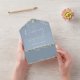 Einladende Hochzeitseinladung mit Blumengrün und eleganter Typografie auf staubblauem Hintergrund. Die Einladung enthält eine perforierte RSVP-Karte, die Ihren QR-Code für Ihre Hochzeitswebsite enthält. Entwickelt von Thisisnotme©