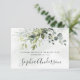 Das Design besticht durch einen Blumenstrauß mit Aquarellgrün, Eukalyptus und einen Sukkulenten über einem staubigen blauen Aquarellspritzer. Das Design bietet auch die Flecken von lackiertem Gold und Grün.
