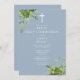 Dusty Blue Greenery Monogram First Holy Communion Einladung