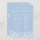 Das Dusty Blue Guess Who Said It Bride oder Groom Game ist eine reizvolle und unterhaltsame Ergänzung zu Ihren Brautparty-Festlichkeiten. Dieses Spiel fügt eine Touch Eleganz mit seinem wunderschönen blauen Blumendesign hinzu und schafft so eine optisch ansprechende und einladende Aktivität für die Gäste. In diesem Spiel wird den Gästen eine Reihe von Zitaten oder Erklärungen präsentiert, und ihre Aufgabe ist es zu erraten, ob die Worte von der Braut oder vom Bräutigam gesprochen wurden. Die individuell anpassbare Natur des Spiels ermöglicht es Ihnen, Zitate einzubinden, die aussagekräftig sind und die einzigartige Persönlichkeit des Paares widerspiegeln. Das komplexe blaue Blumenmuster auf den Spielkarten verbessert die Ästhetik und trägt zum Thema Ihres Brautparty bei. Die visuelle Anziehungskraft des Designs schafft eine einladende und raffinierte Atmosphäre, die das Spiel nicht nur angenehm, sondern auch stilvoll macht. Wenn die Gäste am Spiel "Guess Who Said It" teilnehmen, wird es zu einer leicht ablaufenden und interaktiven Art, das Paar zu feiern. Das Lächeln und der freundliche Bannerschwung werden sich bei den Gästen mit dem Versuch abfinden, das Gesagte zu entschlüsseln, was bei den Teilnehmern ein Gefühl der Kameradschaft vermittelt. Bringen Sie die Blue Floral Guess Who Said It Bride oder Groom Game als Teil Ihres Brautparty Aktivitäten, um dauerhafte Erinnerungen zu schaffen und die Reise des Ehepaares zu feiern. Die Kombination aus zeitlosem Blumendesign und personalisierten Zitaten sorgt dafür, dass dieses Spiel zu einem herausragenden Erlebnis wird, das Ihrem besondere Anlass gleichzeitig Spaß und Eleganz verleiht.