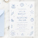 Dusty Blue Hand Drawn Coastal Hochzeit Einladung