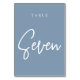Dusty Blue Hand Scripted Table SIVEN Tischnummer