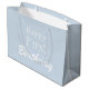 Niedlich pastellblau Happy Geburtstag Geschenktasche. Ideal, um ein Geschenk zum ersten Geburtstag eines Babys zu verpacken. Sehen Sie sich unsere Kollektion für schönere Geschenkverpackungsprodukte an. Dusty Blue Happy Erster Geburtstag Große Geschenktasche.