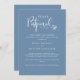 Muss deine Hochzeit verschoben werden? Die elegante Hochzeitsankündigungskarte ist für Sie problemlos erhältlich. Möglichkeit, Text mit Eltern zu erhalten, die Familie und Freunde oder Ehepaare die Nachricht zu senden. Dusty Blau und Weiß Design mit modernen handschriftlichen Kalligrafiedetails. Möglichkeit, die Hintergrundfarbe zu einer anderen Farbe zu ändern, die Sie bevorzugen, indem Sie Anpassen.