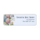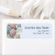 A return address label featuring delicate hydrangea flowers in shades of dusty rose, light purple, and blue on a dusty blue background.