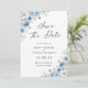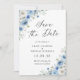 Dusty Blue Ivory Save the Date Card. Dieses stilvolle und elegante Bridal Duschbad lädt mit herrlich handbemalter Wasserfarbe Dusty Blue Ivory Floral ein. Finden Sie passende Artikel in der Dusty Blue Ivory Floral Collection.