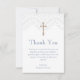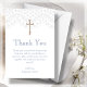 Vielen Dank an Ihre Lieben für ihre Anwesenheit und nachdenkliche Geschenke an dem besonderen Tag Ihres Kindes mit unserer schönen Taufe Dankeschön Karten. Mit einem goldenen Kreuz auf einem zarten Spitzen-Effekt-Druck auf weißem Hintergrund und einer anpassbaren staubblauen, eleganten Schrift sind diese Karten der perfekte Weg, um Ihre Dankbarkeit stilvoll und raffiniert zum Ausdruck zu bringen. Der obere Rand-Spitzeneffekt auf weißem Hintergrund verleiht einer Touch Eleganz und wird durch die individuell anpassbare staubblaue Schrift ergänzt, die jede Karte zu einem personalisierten und einzigartigen Ausdruck Ihrer Wertschätzung macht. Die Rückseite der Karte ist auch in einem schönen staubigen Blau, um eine Touch von Farbe hinzufügen und das Gesamtdesign zu verbessern. Mit der Möglichkeit, die Grußkarte zu verwenden, die Ihnen zur Verfügung gestellt wird, oder sie individuell anzupassen, bieten diese Karten eine persönliche Touch, die Ihren Lieben ein Gefühl von Wertschätzung und Besonderheit geben wird.