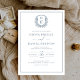 Dusty Blue Leafy Wappen Monogram Elegant Wedding Einladung